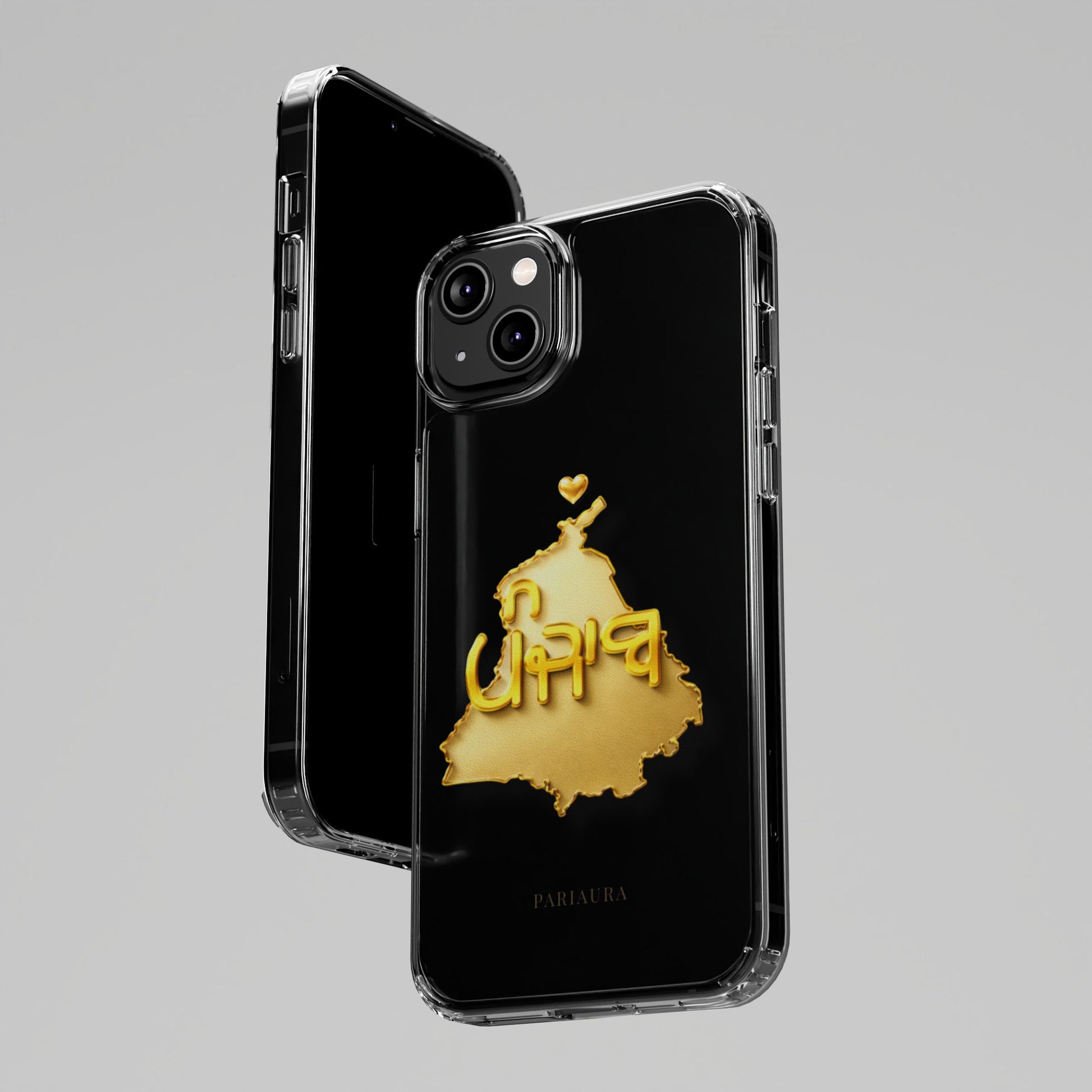 This premium clear iPhone case features a gold 3D Punjab map design on a transparent back panel with clear sides, allowing the original phone look to shine through. Designed with a modern, minimal aesthetic, it blends Punjabi heritage with everyday elegance. Slim, lightweight, and comfortable to hold, it offers reliable protection without adding bulk. A refined choice for daily use or gifting, created for those who carry Punjab with pride.